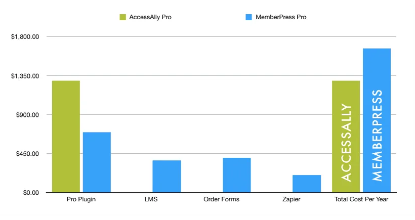 AccessAlly Pro comes in at a fraction of the price, with no add-ons required.